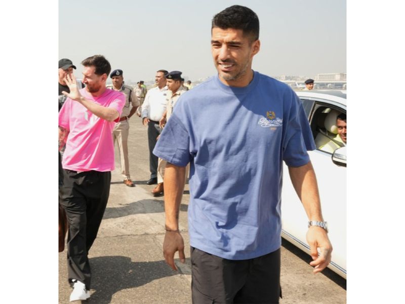 मुंबई (महाराष्ट्र) (भारत), 15 दिसंबर (एएनआई): 14 दिसंबर को वानखेड़े स्टेडियम में अपने सफल GOAT इंडिया टूर के बाद शहर से प्रस्थान करने के बाद मुंबई हवाई अड्डे ने फुटबॉल के दिग्गज लियोनेल मेस्सी, लुइस सुआरेज़ और रोड्रिगो डी पॉल की झलकियाँ साझा कीं। मुंबई हवाई अड्डे ने मेसी, सुआरेज़ और डी पॉल को उनकी यात्रा के लिए धन्यवाद दिया, जिसने सभी के लिए स्थायी यादें छोड़ दीं।