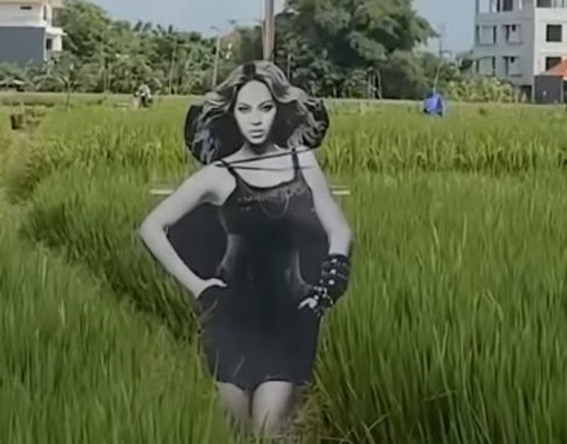 कैप्शन में लिखा है, “बाली में किसानों ने पक्षियों को दूर रखने के लिए अपने खेतों में बेयोंसे का आदमकद कटआउट लगाकर फसल सुरक्षा को एक रचनात्मक नए स्तर पर ले लिया है। काले और सफेद रंग की आकृति फसलों के बीच लंबी खड़ी है, जो एक पारंपरिक बिजूका को अप्रत्याशित रूप से आंख को पकड़ने वाली चीज़ में बदल देती है।”