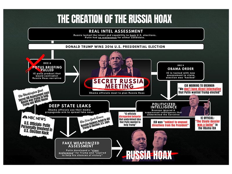 हमने हिलेरी क्लिंटन को पकड़ा। हमने बराक हुसैन ओबामा को पकड़ा। वे हैं – और फिर आपके पास कई, कई लोग हैं। (पूर्व राष्ट्रीय सुरक्षा सलाहकार) सुसान राइस। वे सब वहाँ हैं। नाम सभी हैं। और मुझे लगता है कि उन्हें लगा कि वे इसे वर्गीकृत जानकारी में डालने जा रहे हैं और कोई भी इसे फिर से नहीं देखेगा, लेकिन यह इस तरह से काम नहीं करता है।