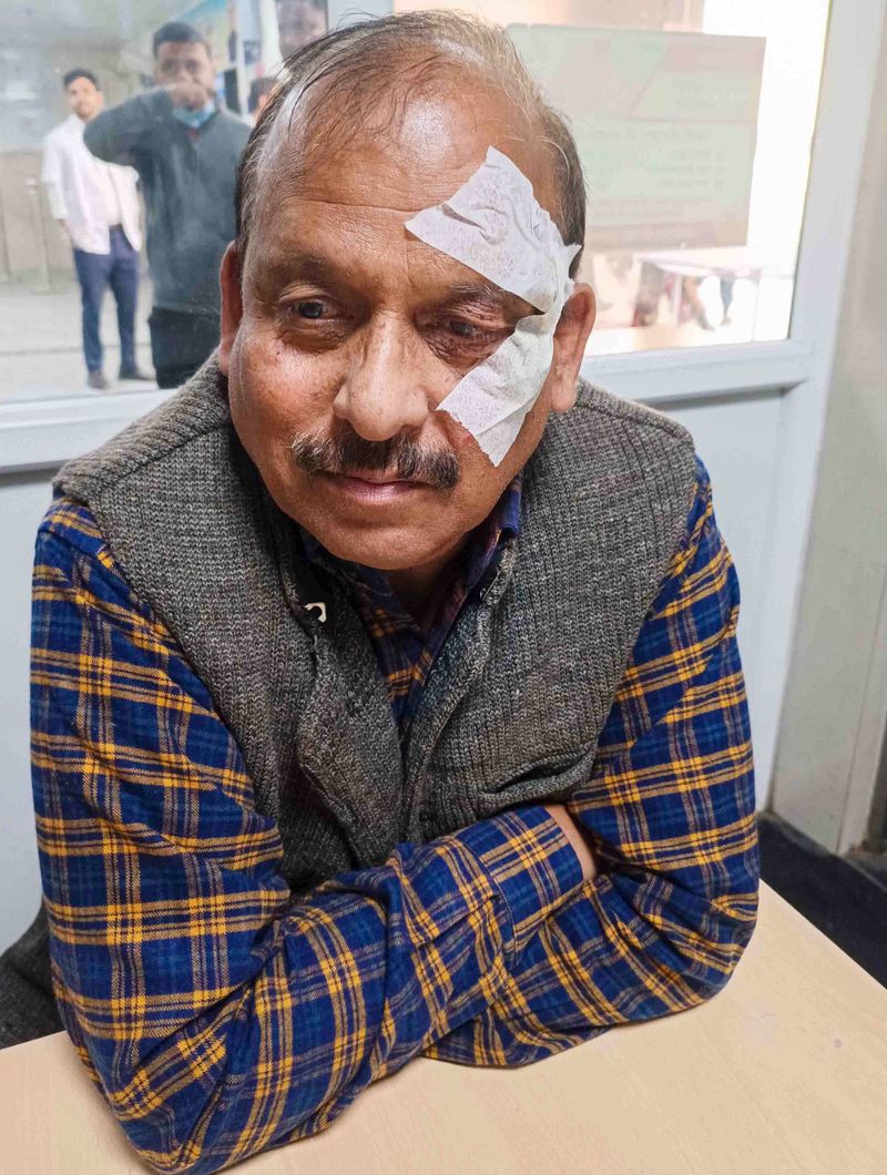 उन्होंने कहा, “कार्यालय की मेज पर रखे सामान मुझ पर फेंके गए। मेरे सिर पर चोट आई और मेरा चश्मा टूट गया।”