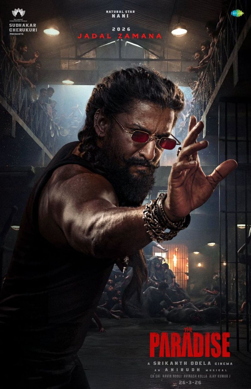 “2026 उर्फ जदल ज़माना में आपका स्वागत है। नया साल मुबारक। #द पैराडाइज़ सिनेमाघरों में 26वां मार्च, 2026। तेलुगु, हिंदी, तमिल, कन्नड़, मलयालम, बंगाली, अंग्रेजी और स्पेनिश में रिलीज़। प्राकृतिक सितारा @nameisnaniin और @Odela_Sicanth सिनेमा। एक @Airudhofficimical,” कैप्शन पढ़ें।