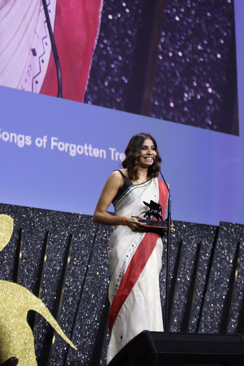 “जो खुश अंत पसंद नहीं करता है? आखिरकार, उन्होंने सिनेमाई इतिहास में एक स्थान अर्जित किया है, जो हाल ही में संपन्न वेनिस फिल्म फेस्टिवल में अपनी फिल्म, सॉन्ग्स ऑफ फॉरगॉटन ट्रीज़ के लिए ओरीज़ोंटी सेक्शन में सर्वश्रेष्ठ निर्देशक पुरस्कार जीतने वाली पहली भारतीय बन गई। वास्तव में, वह कृतज्ञता से भरी है – ‘मैं नृत्य नहीं कर रही हूं, लेकिन मुझे खुशी है कि इस असली क्षण ने खुद को प्रस्तुत किया और पश्चिम बंगाल के मुख्यमंत्री की तरह बिगविग्स ने उन्हें बधाई देने वाले संदेश भेजे।