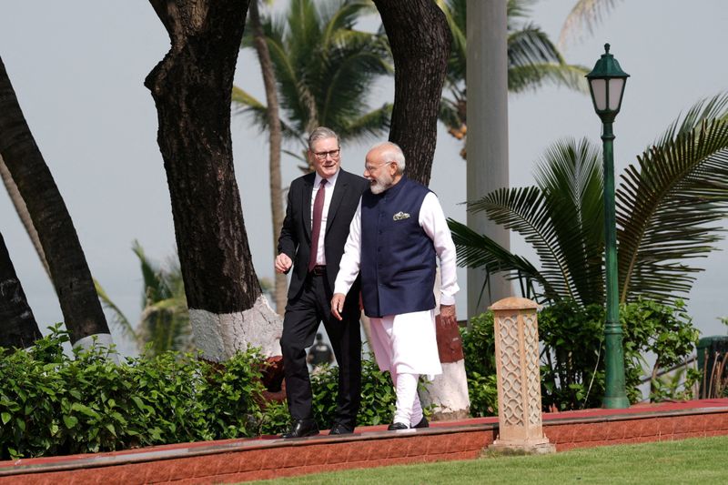 प्रधान मंत्री नरेंद्र मोदी और उनके ब्रिटिश समकक्ष कीर स्टार्मर ने द्विपक्षीय बैठक के लिए मुंबई में मुलाकात की, जुलाई में दोनों पक्षों द्वारा मुक्त व्यापार समझौते (एफटीए) पर हस्ताक्षर करने के बाद यह उनकी पहली बैठक थी।