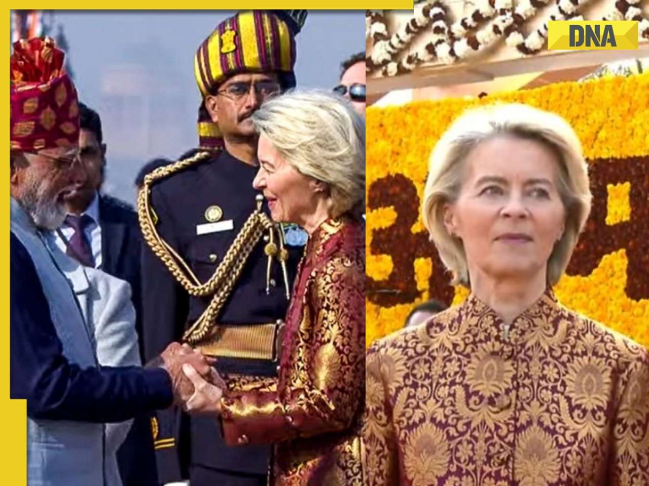 गणतंत्र दिवस परेड में उर्सुला वॉन डेर लेयेन की पोशाक भारत-यूरोपीय संलयन में एक मास्टरक्लास थी। उन्होंने एक परिष्कृत, उच्च कॉलर वाली जैकेट पहनी थी, जिसमें मैरून रंग के ऊपर धात्विक सोने की समृद्ध ब्रोकेड की विशेषता थी, जो बनारसी रेशम से तैयार की गई थी, जो भारतीय विरासत का पर्याय है।