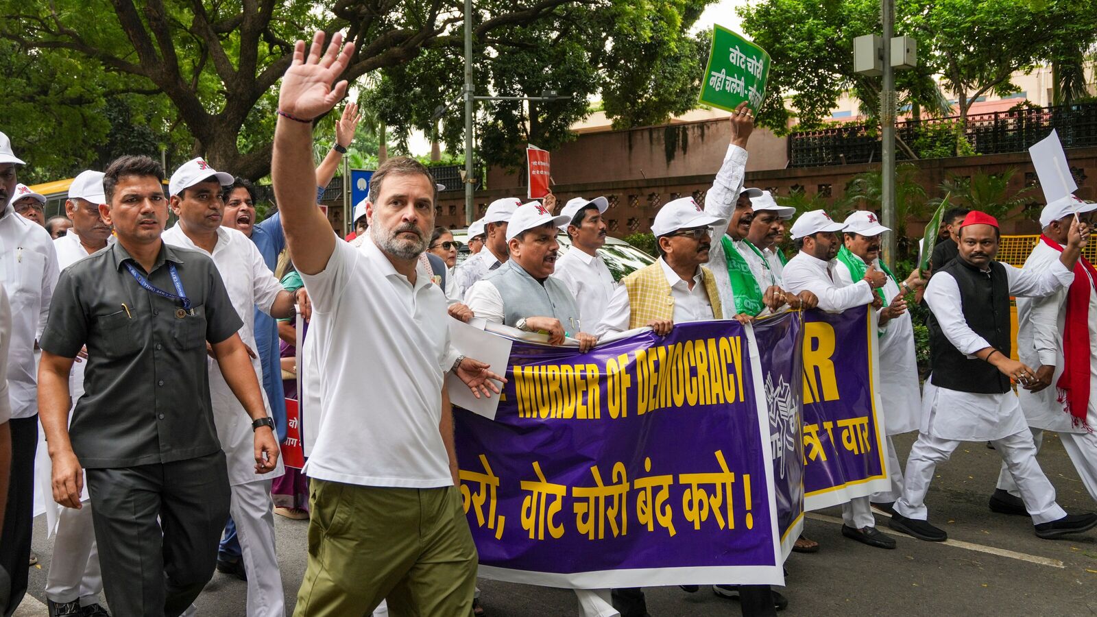इससे पहले दिन में, विपक्षी सांसद, जिसमें राहुल गांधी और शामिल हैं Mallikarjun Khargeबिहार में चुनावी रोल के संशोधन के खिलाफ संसद हाउस से चुनाव आयोग से सोमवार को एक विरोध प्रदर्शन किया और आरोप लगाया कि “वोट चोरी” था, लेकिन पुलिस द्वारा बीच में रोका गया और उच्च नाटक के बीच हिरासत में लिया गया।