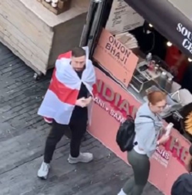 घटनाओं के एक विडंबना में, इंग्लैंड के झंडे में लिपटे एक रक्षक को भारतीय स्नैक्स – प्याज का आनंद लेते हुए देखा गया था bhajis -शनिवार को लंदन में एक प्रमुख आव्रजन मार्च के दौरान, इंटरनेट को विभाजन में छोड़ दिया!