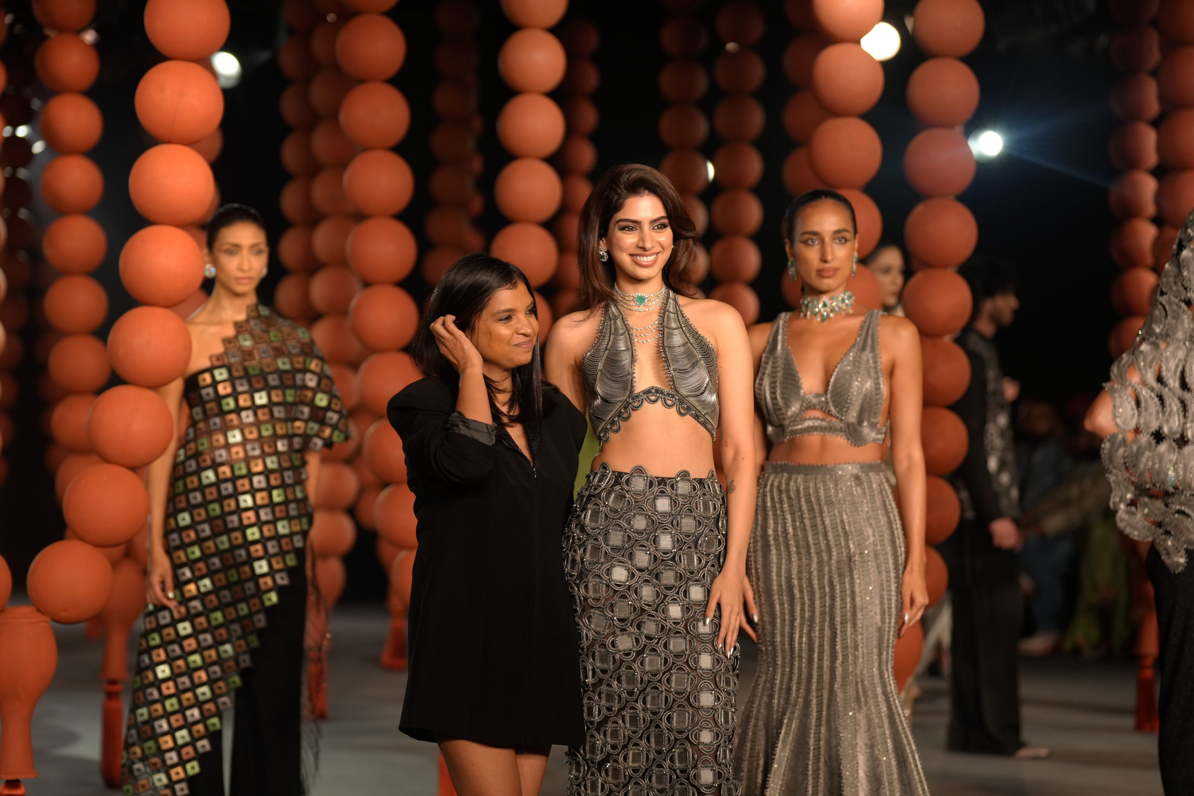 ऐशा राव के संग्रह को ‘वाइल्ड टू द वाइल्ड’ के रूप में वर्णित किया गया था, जो प्रकृति से प्रेरित थे – केला के पत्ते, कमल के फूल और ताड़ के रूपांकनों। रोमांटिक कट्स, चमकदार कपड़े, और नरम रंग जैसे रोज़ गोल्ड, बेरी और शैंपेन ने संग्रह को बाहर खड़ा कर दिया।
