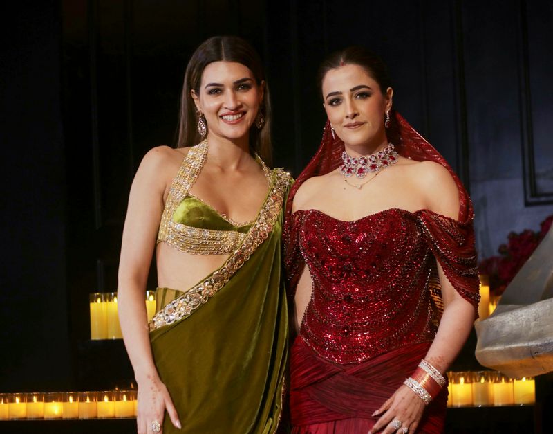 स्टेबिन बेन ने चमचमाती काली शेरवानी पहनी थी। अपनी भव्य शादी के रिसेप्शन के मेजबान के रूप में मेहमानों के लिए पोज़ देते हुए दोनों एक साथ खुश दिख रहे थे। बाद में इस जोड़ी में कृति सेनन भी शामिल हुईं, जिन्होंने स्लीवलेस ब्लाउज के साथ जैतून-हरे रंग की साड़ी में शो को चुरा लिया। अभिनेत्री ने अपने रेट्रो स्टाइल को पूरा करने के लिए अपने लुक में एक्सेसरीज़ का भार कम किया और केवल एक कान की बाली पहनी।