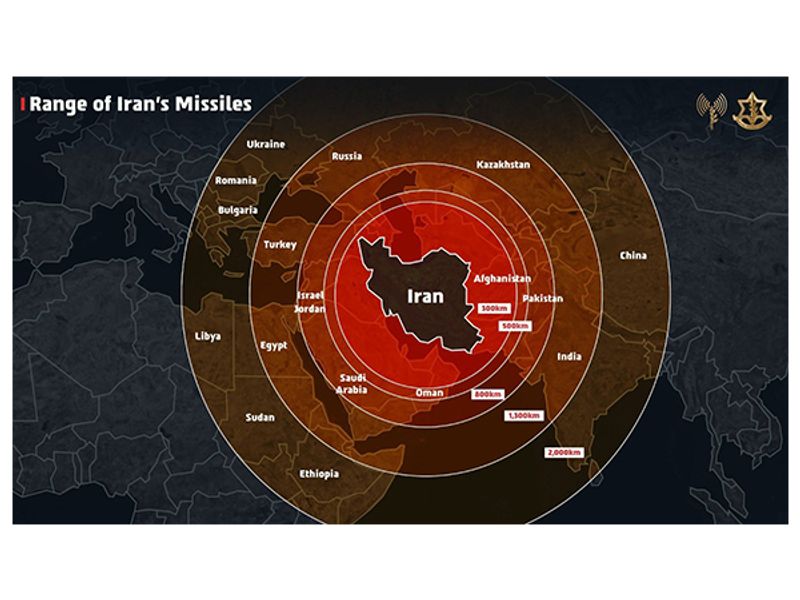 इस दृश्य का उद्देश्य ईरान की कथित मिसाइल रेंज को चित्रित करना था, इजरायल के व्यापक संदेश के हिस्से के रूप में कि तेहरान ने एक वैश्विक खतरा पैदा किया।