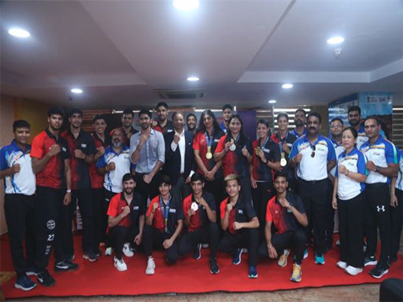 स्वर्ण पदक विजेता जैस्मीन लेम्बोरिया, नुपुर और साक्षी और कजाकिस्तान के संस्करण से रजत पदक विजेता पूजा रानी ने इस कार्यक्रम के मौके पर एएनआई से बात की।